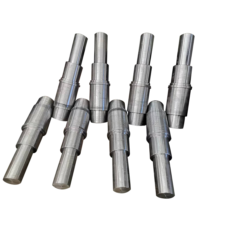 棒料、鍛件 → 粗車加工 → 調質 → 精車加工 → 銑鍵槽 → 熱處理(表面淬火貨滲碳淬火) → 研磨中心孔 → 粗磨 → 精磨 → 成品檢測包裝